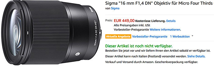 Sigma 16mm Preorder Start In Europe Shipment Start On December 2